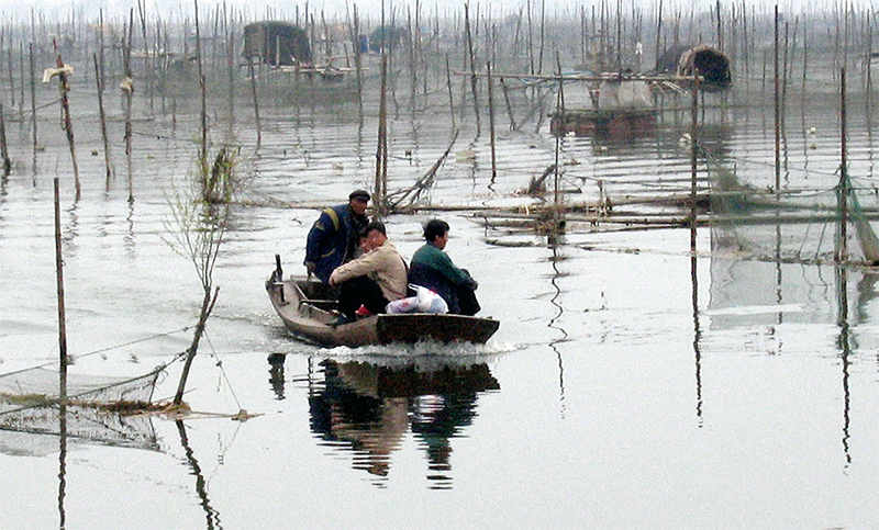 河北90%的濕地消失,最大的兩個濕地白洋淀和衡水湖都靠人工調水維持一定的水面。特別是白洋淀,自從習近平定下雄安為副都,人工調水就成了政治任務。圖為2006年4月白洋淀景況。(Robert Saiget / AFP)