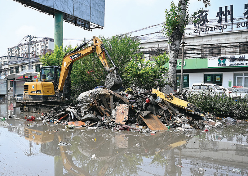 2023年7月31日,北京市門頭溝遭遇洪災,街道一片狼藉。(Pedro Pardo / AFP)