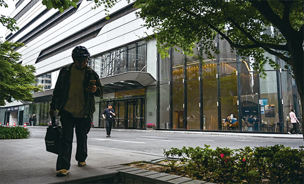 全球知名的凱盛(Capvision)投資諮詢公司上海總部遭警方多次突訪,被指為境外情報機構幫凶。圖為2023年5月12日,凱盛上海辦事處所在大樓入口。(Hector Retamal / AFP)