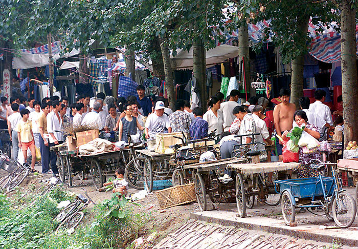 1999年中國仍是世界上人均最貧窮的國家之一,排名在斯里蘭卡和圭亞那之間。圖為1999年8月11日,人們在一北京郊區擁擠的街市上。(AFP)
