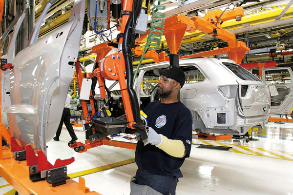 中共實施主導關鍵供應鏈的產業政策,美中貿易關係必須改變,華盛頓應該大力投資建設國內產能。圖為底特律汽車工廠流水線。(Bill Pugliano / Getty Images)