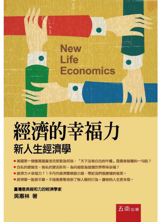 在這其中,一意追求經濟成長過了頭,恐怕要負很大的責任,而對「金錢貨幣本質」的誤解、對市場的抹黑扭曲,以及諸多錯誤經濟觀念的引導則是源頭。有鑑於此,導正經濟觀念,進而擴大影響範圍,更顯現出的確是一項重要的工作。乃進一步將「錢」、「競爭」、「市場失靈」、「外部性」、「成長的迷思」、「幸福指數」這些現今非常關鍵的理念,各以專章加入,雖使小書篇幅增加,卻更為完整。為免學術化的書名讓一般讀者產生排斥,捨棄原本「經濟學」書名,以平易近人的「經濟的幸福力」為書名,再將「新人生經濟學」作副名,期待吸引更多讀者接觸,更希望能打動人心,喚起人民的思考,讓人間社會不再沉淪,進而向上提升。