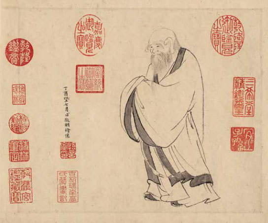 老子不知道那個天地萬物的創造者是誰,只能用一個「道」字代表其存在。圖為明 文徵明《老子像》。(公有領域)