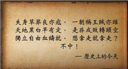 歷史上的今天,林肯:失身草莽良亦寇,一朝稱王賊亦雄。天地黑白早有定,是非成敗轉頭空。獨立自由血鑄就,想拿走就拿走?不中!◇