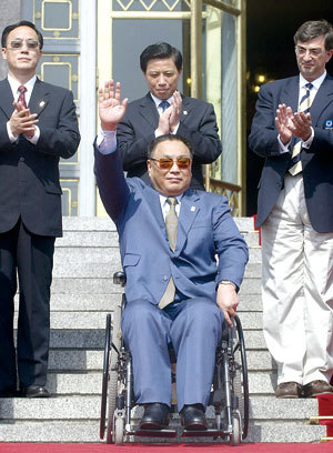 2018 年9 月16 日在殘聯大會閉幕式上,鄧樸方回顧鄧小平改革開放40 年的進程,並告誡「要知道自己的分量,不妄自尊大」,公開反習。圖為鄧樸方2004 年資料照。(GohChai Hin / AFP)