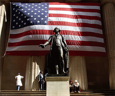 紐約聯邦國家紀念堂(Federal Hall)前的喬治‧華盛頓雕像。(Spencer Platt / Getty Images)