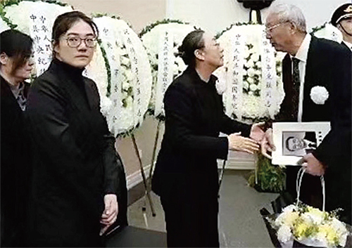 11月8日,李克強遺孀程虹接受前來祭典人員的慰問,李克強的女兒則將頭轉向另一側。(趙蘭健X帳號)
