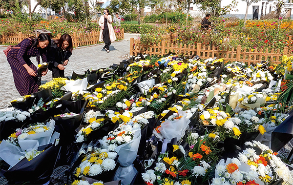 法廣報導稱,緬懷李的對聯、話語、回憶、故居前鋪滿的鮮花,透出的是深層的哀怨、憤怒和不滿。圖為2023年10月30日,人們在安徽省滁州市李克強曾經工作過的地方獻花。(STR / AFP)