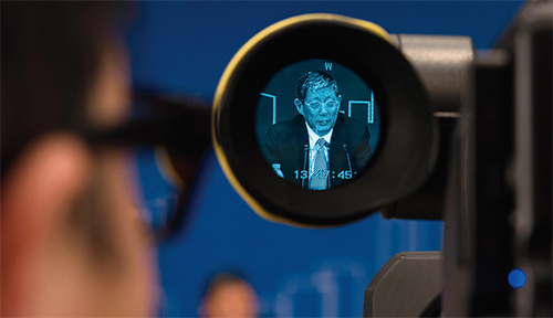 2021年4月12日凌晨,上海前市長楊雄因心臟病突發猝死。圖為2014年1月29日上海市人大會議閉幕後,楊雄出席記者會。(Johannes Eisele / AFP)