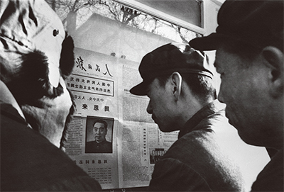 1976年1月8日,中共二號人物、時任國務院總理、全國政協主席、中共第一副主席周恩來因膀胱癌死於北京共軍三〇五醫院。圖為民眾閱讀周去世的新聞報導。(Xinhua / AFP)