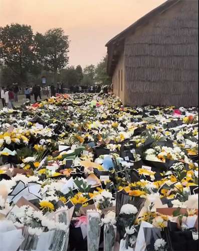 安徽合肥紅星路80號的李克強故居周邊,鮮花不斷向上堆疊,花海已經變成「花山」。在鄭州鄭東新區的如意湖邊,鮮花擺滿了堤岸。李克強在安徽定遠的祖屋前也出現大片花海。