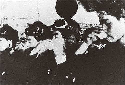 神風隊員很多都畢業於東京大學、京都大學這樣的名校。圖為年輕飛行員在執行神風特攻隊自殺式攻擊任務之前,喝一杯水。