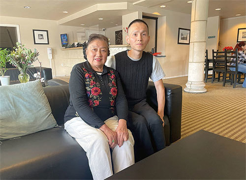 中國殘疾人岳義(右)與《被遺忘的孩子:中國孤兒》一書的作者張淑雲(左)。(攝影/楚一丁)