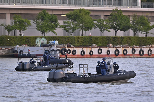 日本積極協助菲律賓等東南亞國家的海上防衛,12月4日開始,日本海上保安廳在印度尼西亞舉行了海洋監視方面的訓練活動。圖為日本海上保安廳人員在信濃河上巡邏。(Kazuhiro Nogi / AFP)
