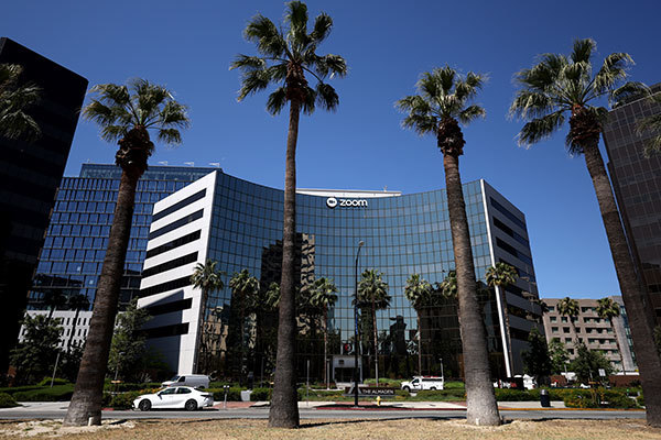 Zoom總部位於美國加州,但因其在中國設有分部,受制於中共法律,被要求與國家安全部共享中國用戶的個人資料。圖為加州Zoom總部大樓。(Justin Sullivan / Getty Images)