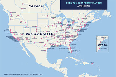 據不完全統計,神韻2024演季巡迴演出將覆蓋全球五大洲至少20個國家200個城市,所到城市總數將達歷年之最。