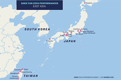 在亞太地區,神韻的行程包括日本、台灣、澳洲等地的23個城市。