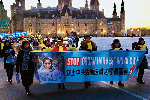薩斯緩解後,中共持續迫害法輪功,並變本加厲大量活摘法輪功學員的器官。圖為2022年12月14日,法輪功學員在加拿大渥太華國會山前抗議中共活摘器官暴行。(任僑生/大紀元)