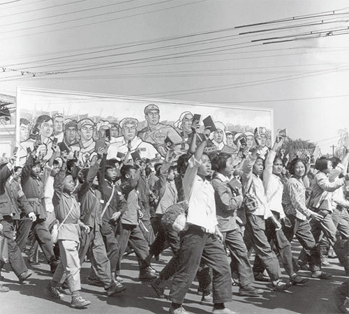 文革是中國空前的一場浩劫。圖為1966年6月,紅衛兵在遊行中揮舞著毛澤東的小紅皮書。(Jean Vincent / AFP)