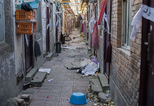 蔡奇清理北京的「低端人口」,包括斷水斷電、斷供暖、行政拘留、限期搬家,致使數十萬人在寒冬中流離失所。圖為2017年12月11日,北京郊區一個移民村的住房區,門被當局封鎖。(Nicolas Asfouri / AFP)