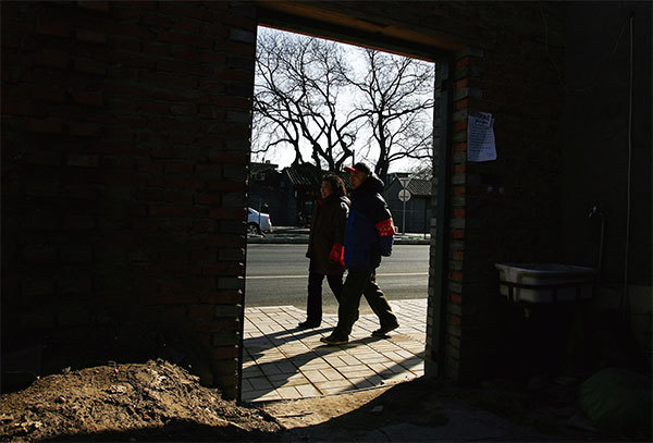 最近,中共再次大力宣傳所謂「發動群眾鬥群眾」的「楓橋經驗」。這種群眾專政是文革的前奏。圖為2008年2月22日,兩名戴著紅袖章的老人在北京街道上巡邏。(Guang Niu / Getty Images)