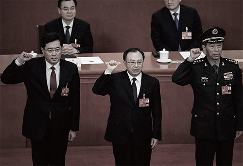 秦剛跟李尚福被拿下了將近半年多,中共官方一直諱莫如深,黨內的深度清洗料將繼續。圖為2023年3月12日李尚福(右)被任命為國防部長,秦剛(左)被任命為外交部長。(Noel Celis / AFP)