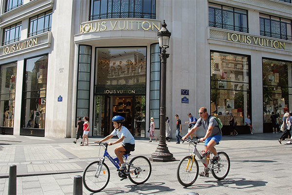 路易威登以旅行箱起家,始終保有一份文化理念,那就是「旅行哲學」。圖為巴黎香榭麗舍大街上的路易威登專賣店。