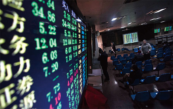 共產主義的制度下,企業盈利最大化不是目的,在這樣的情況下,消費者們是否受益、過得更好?圖為中國投資人在上海某一證券行觀看股票資訊。(Johannes Eisele/AFP)