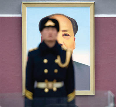 傳統毛左擠壓著習開倒車,逼其回歸毛時代。這部分勢力是底層民眾的代表。圖為天安門城樓上的毛澤東像。(Nicolas Asfouri / AFP)