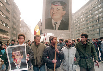 1989年12月25日,羅馬尼亞布加勒斯特市中心要求結束齊奧塞斯庫25年獨裁統治的反共起義。當天齊奧塞斯庫和他的妻子埃琳娜被廢黜,並被行刑隊處決。(Patrick Hertzog / AFP)