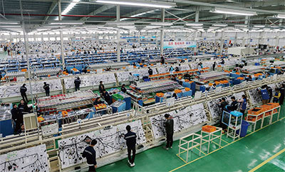 民營經濟貢獻了中國經濟50%以上的稅收、60%以上的GDP、70%以上的技術創新成果、80%以上的城鎮勞動就業,和90%以上的企業數量。圖為2019年3月安徽省淮北市一家工廠。(STR / AFP)