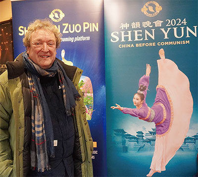 2024年1月6日下午,John Peter Kinkead和朋友一同觀看了神韻新紀元藝術團今年在牛津新劇院(New Theatre)的第三場演出。(攝影/麥蕾)
