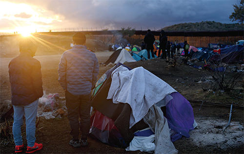 2023年12月1日清晨,加州賈庫巴溫泉大批走線進入美國的非法移民等待美國邊境巡邏隊的處理。(Mario Tama / Getty Images)