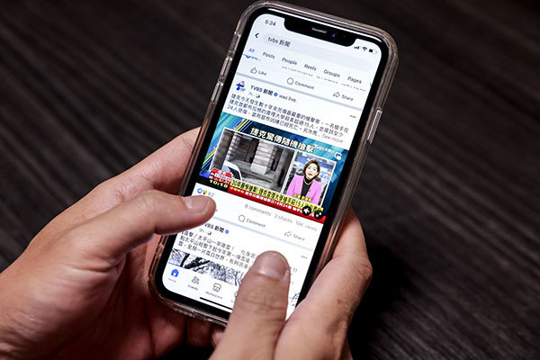 2023 年 12 月 22 日,台北一名用戶正在 Facebook 上查看總統大選相關新聞內容。(I-Hwa Cheng / AFP)
