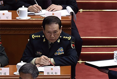 2023年7月,中共火箭軍傳出集體腐敗窩案後,中共黨魁強調,軍隊要把「正風肅紀反腐」不斷向縱深推進,並要「扭住高層黨委」。圖為前中共國防部長魏鳳和資料圖。(Wang Zhao / AFP)