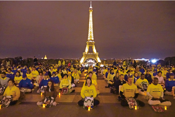 25年來,中共使盡最邪惡的流氓手段,也沒能打倒法輪功。相反,法輪功洪傳156個國家。圖為2017年9月30日法輪功學員在巴黎燭光夜悼遭中共迫害致死的中國大法弟子。(葉蕭斌/大紀元)