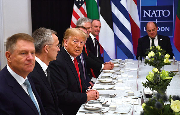 特朗普北約政策的最後目標,應該是讓美國強大,讓歐洲自強,讓中共滅亡。圖為2019年12月4日時任美國總統的特朗普在倫敦的北約峰會上。(Nicholas Kamm / AFP)