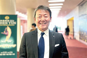 株式會社丸屋董事長原康一(Hara Koichi)2024年2月16日下午,觀看了神韻紐約藝術團在福岡太陽宮音樂廳(Fukuoka Sunpalace Hall)的第三場演出。(攝影/牛彬)