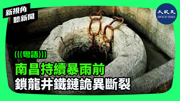 南昌持續暴雨前 鎖龍井鐵鏈詭異斷裂(大紀元製圖)