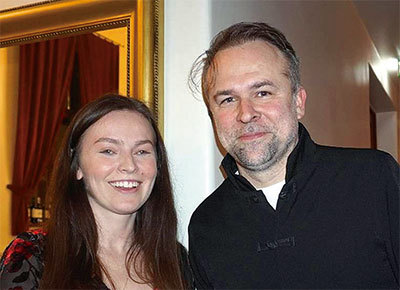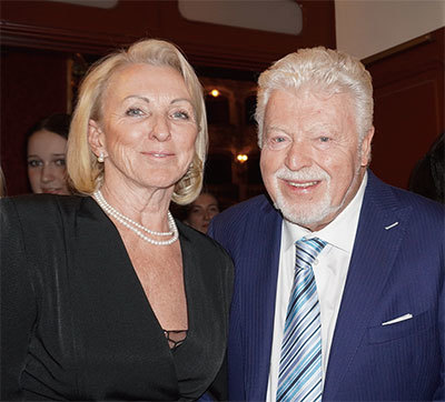 2024年3月6日晚,捷克著名電影導演、編劇和製片人Dan Svátek和女友Ilona Koutkov觀賞了神韻世界藝術團在布拉格國家歌劇院(State Opera)的首場演出。(麥蕾/攝影)