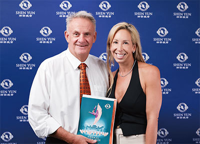 2024年3月8日晚上,艾美獎電視製作人、節目主持人Dan Willis和太太Linda Willis觀賞了神韻新世界藝術團在大學園州長州立大學表演藝術中心的演出。(文燁/攝影)