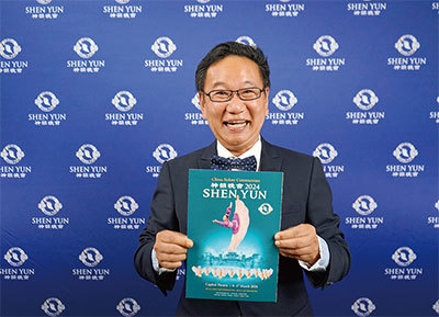 2024年3月10日下午,在澳洲悉尼帝苑劇院,前悉尼萊德市(Ryde)副市長Peter Kim觀看了神韻紐約藝術團在當地的第四場演出。(新唐人電視台)