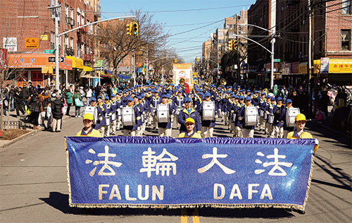 2024年3月3日,法輪功在紐約布碌崙八大道舉行大遊行,聲勢浩大。(戴兵/大紀元)