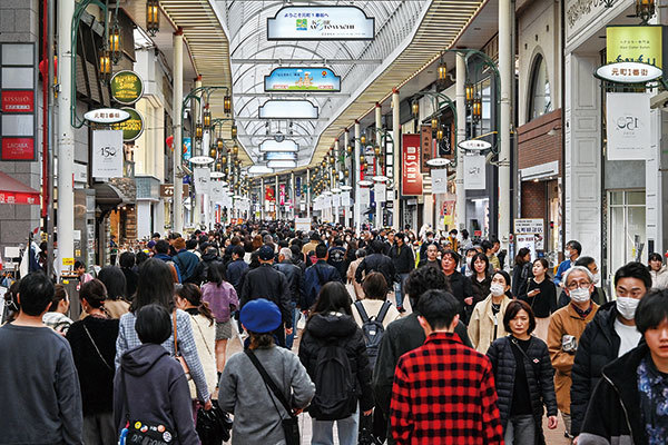 2024年3月17日神戶元町購物街人潮洶湧。(Richard A. Brooks / AFP)