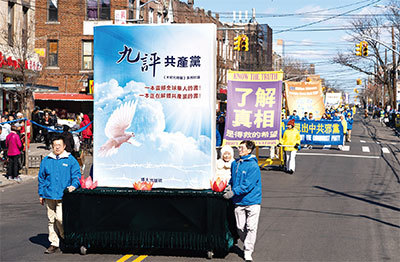 2020年3月1日,紐約法輪功學員在紐約布魯克林舉行遊行。(戴兵/大紀元)