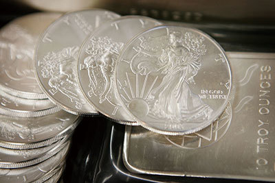 亂世買黃金,白銀的價值也會攀升。圖為芝加哥硬幣公司出售銀條。(Scott Olson / Getty Images)