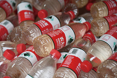 鍾睒睒選擇賣水,深耕傳統行業20多年,他認為正是傳統企業數十年來的積累,才有了如今繁榮的消費社會和互聯網企業發展的土壤。圖為農夫山泉礦泉水。(Greg Baker / AFP)
