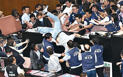 5月17日,立法院院會處理國會改革法案,爆發一場朝野立委嚴重肢體衝突事件,似乎印證中共分裂台灣的意圖。(宋碧龍/大紀元)