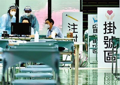 2021年6月15日,台灣新北市新莊體育場的新冠病毒疫苗接種區。(Sam Yeh / AFP)