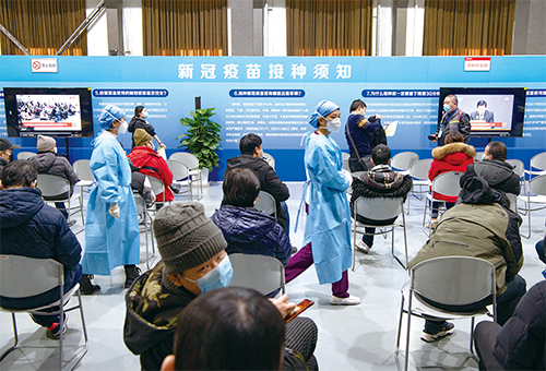從國藥疫苗的副作用來看,很多都是病毒感染的症狀。圖為2021年1月3日,人們在北京的一個臨時疫苗接種中心等待接種COVID-19疫苗。(STR / CNS / AFP)